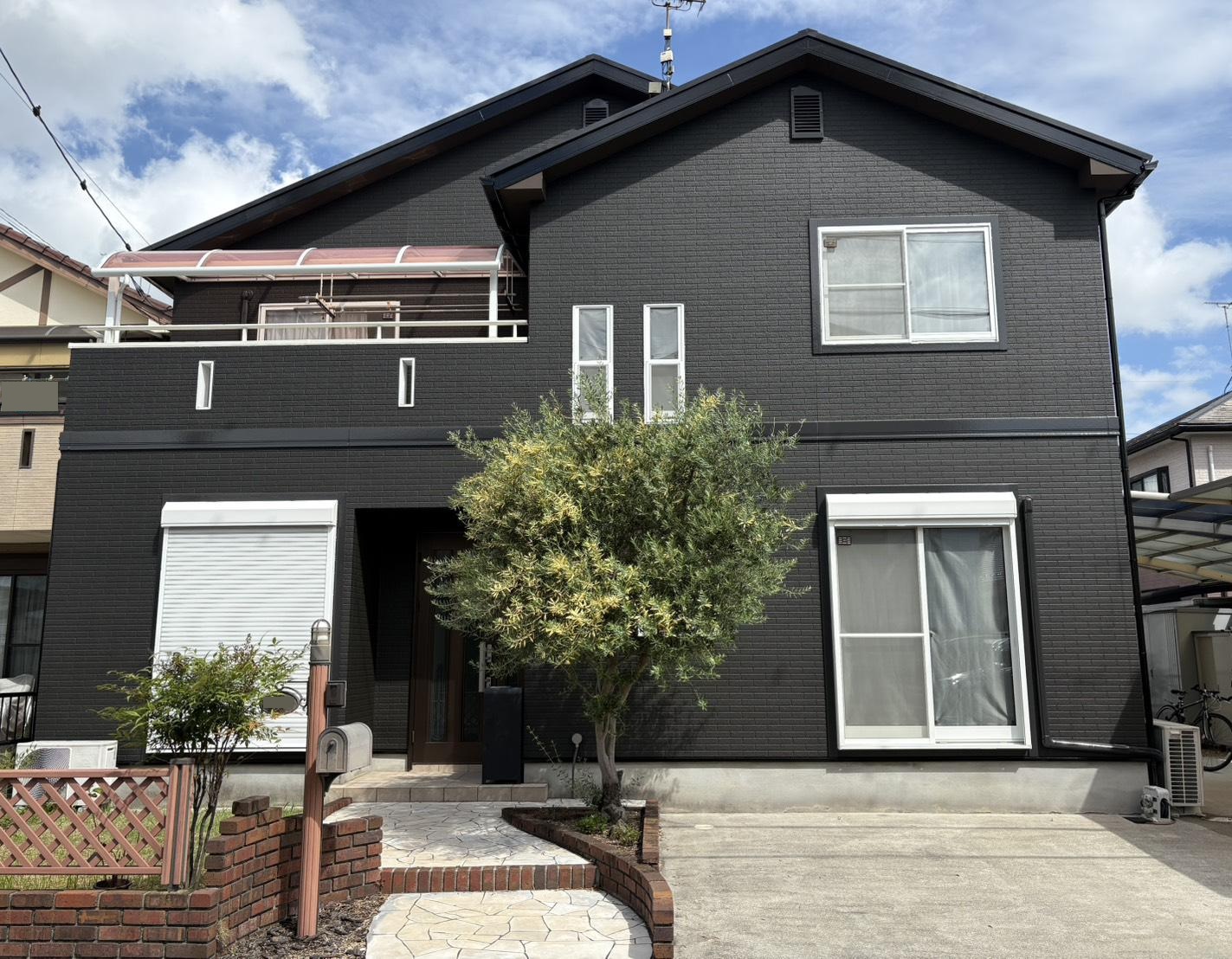 仕上がりのイメージは「大きなイメチェン」ということもあり、黒を基調とした「格好良い仕上がり」をテーマに、軒天、幕板、化粧板など、様々な部分の色にも拘り、丁寧に施工させていただきました。(色No.19-30A)